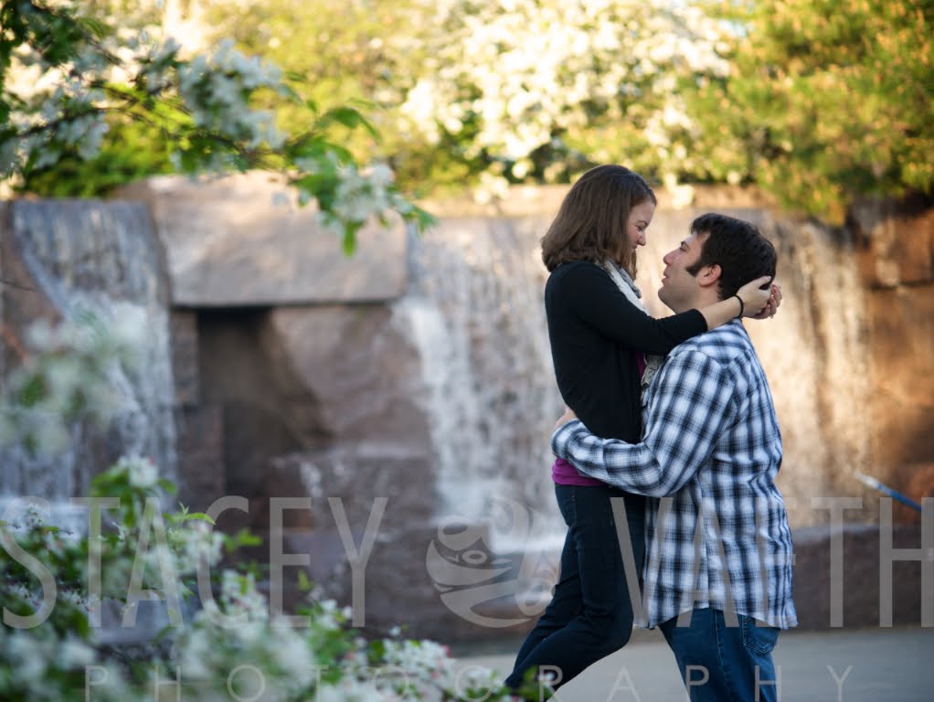 It was a glorious sunrise over the Tidal Basin this morning. I had the pleasure of working with Chris and Megan, who are high school sweethearts, and getting married in August in their hometown of Schenectady NY. They were so great in front of the camera, really natural and at ease. We had just a great morning exploring the sights at FDR, the Tidal Basin and the Potomac shores. I hope you guys enjoy the remainder of your engagement! It was so much fun to work with you.