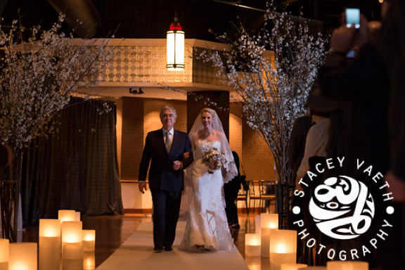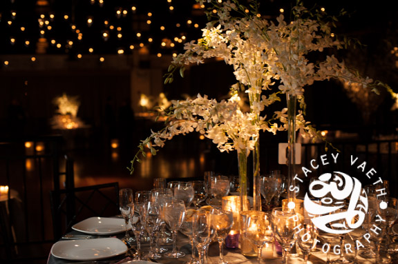The venue was spectacular. Tea lights hanging from the ceiling, cherry blossoms overflowing in tall vases. So elegant and classically romantic. It’s like they took a picture-perfect garden reception and brought it into the big city. For you photographers out there, yes, that is a 12 foot black ceiling. One of the greatest photographic challenges we face.